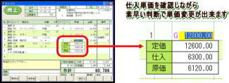 仕入先の画面で仕入先(商品ごと)の価格がワンタッチで見ることができます。仕入価格の交渉などに大いに役立ちます。